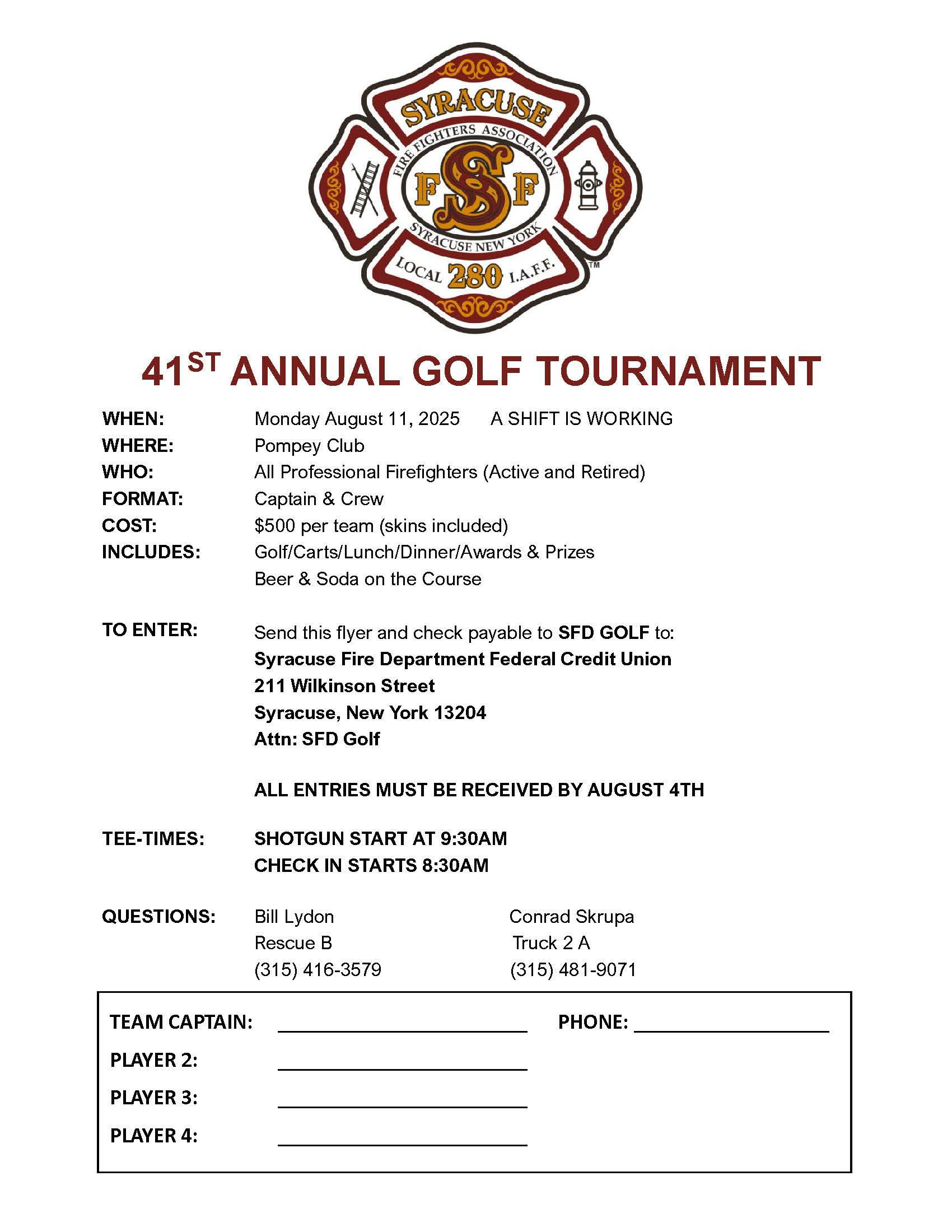 41st Annual SFD Golf Tournament – Registration Form